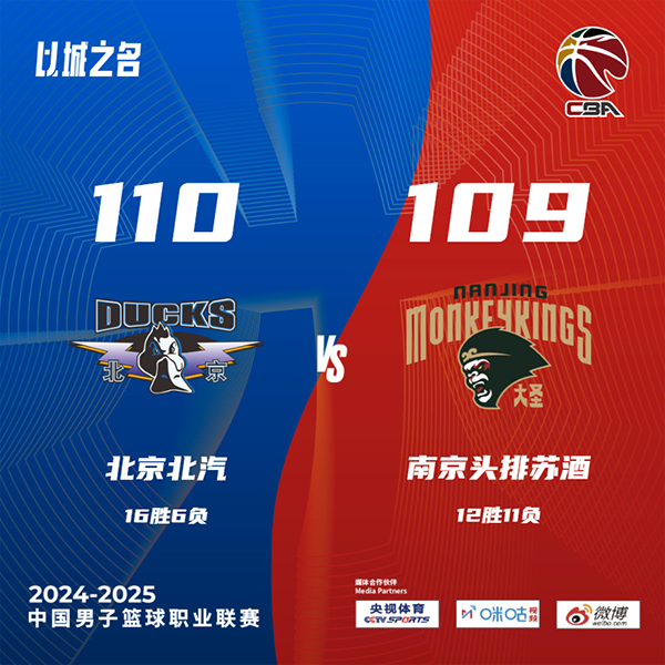 24直播网讯北京时间12月28日CBA常规赛,半场北京56-51同曦,林葳在最后时刻干拔三分未中,祝铭震抢到篮板球后抛投,可惜球弹出篮筐,南京错失绝杀机会。最终北京110-109同曦。北京北汽陈盈骏17分9助,理查德-所罗门17分1助;南京头排苏酒林葳32分7助,赵柏清17分1助。