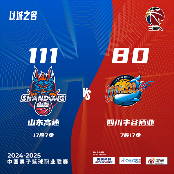 24直播网讯北京时间12月30日讯 CBA常规赛,山东对阵四川,山东最近发挥稳定取得3连胜,四川则是上场比赛1分险胜广州。开场后四川在亨特的带领下打得有声有色,球队外线手感也是不错,山东则是靠克里斯的强势发挥紧咬比分。第二节盖利和摩尔联手爆发,四川单节打出34-15的攻势建立起领先。易边再战,四川进攻依旧没有起色,山东继续扩大领先优势。最后一节虽然四川进攻找到感觉,但他们防守完全无法限制山东,最终山东111-80大胜四川取得4连胜。