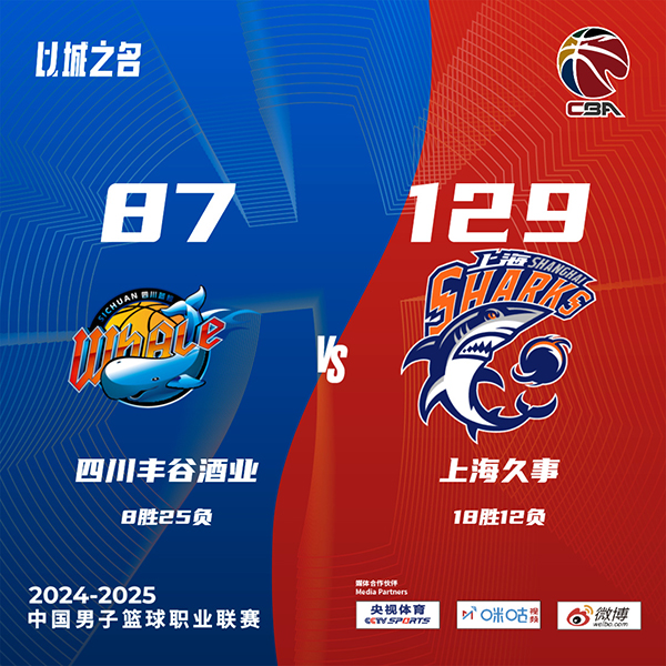 24直播网讯 北京时间1月20日讯 CBA常规赛,上海客场挑战四川。上海17胜12负暂列联赛第12,四川8胜24负排在倒数第4。比赛开始,双方开场势均力敌,比分交替领先,上海连中三分占据主动,四川里突外投努力追赶,上海持续发力,多点开花将分差拉开到两位数,半场战罢上海59-47领先四川。易边再战,上海火力全开,一举将分差拉开到20分以上,末节四川仍无起色,上海越战越勇不断扩大优势,最终,上海129-87大胜四川,客场过关。