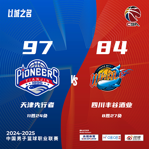 24直播网讯 北京时间1月25日讯 CBA常规赛继续进行,天津主场迎战四川,天津目前10胜24负位列联赛第15位,四川苦吞5连败,8胜26负排在第16位。首节开打后天津率先发力连续取分,亨特和马里奇短暂止血,无奈林庭谦联手拉维特接连打进,首节结束时天津领先8分,次节回来,双方进攻火力放缓,拉维特和林庭谦连投带罚继续取分,半场战罢,天津已经领先14分。易边再战后四川逐渐找到节奏,亨特和马里奇连投带传带动全队,四川不断迫近比分,天津连造杀伤及时回应,三节结束后天津依然领先10分,末节上来,四川进攻乏力追分无望,天津乘胜追击终结悬念,最终天津97-84击败四川送对手6连败。