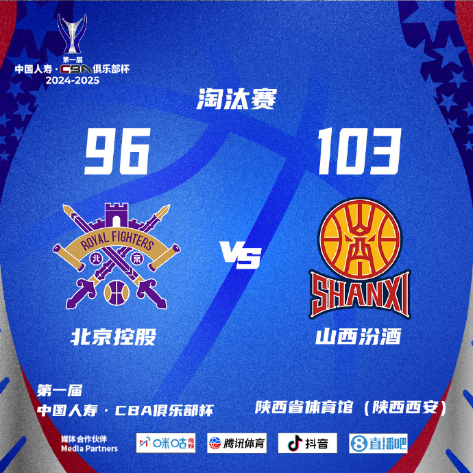 24直播网2月9日讯 CBA俱乐部杯上半区8进4,北控对阵山西。本场比赛采用单节10分钟、外援4节8人次制度,且是单败淘汰制。本场比赛,山西张宁和北控廖三宁都因国家队集训缺阵。比赛开始,北控率先发力打出9-3开局,山西通过内线止血,特莱斯和里勒撑起球队进攻,北控很快领先到双位数,迪亚洛突破追到差8分,次节里勒发力里突外投连砍10分带队拉开比分,但古德温联手迪亚洛接连突破追分,半场北控还领先12分。下半场,双方展开拉锯战,北控打出9-0扩大分差,但古德温接连突破个人回应8-0强势止血,北控接连内线取分还是保持住10分左右领先,末节北控打了半节仅得5分,沈梓捷也受伤离场,原帅接连中远投砍下6分帮助山西直接抹平分差,孟子凯连续两记三分稳住局势,原帅三分再追平,比赛进入白热化,古德温和法耶接连错失绝杀机会,双方进入加时。加时赛,贾明儒里突外投连砍6分主宰加时,孟子凯接连三分止血,原帅三分加罚球杀死比赛,最终山西加时103-96逆转北控,晋级4强。