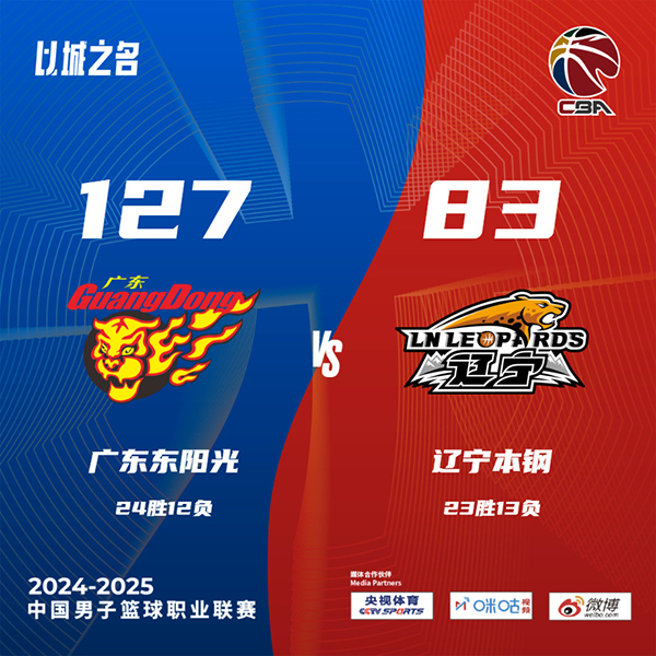 24直播网讯北京时间3月5日讯 CBA常规赛,广东对阵辽宁,广东和辽宁目前分别排在联赛第九和第八,上场比赛两队都是取得胜利,本场比赛胡明轩复出。开场后广东率先打出攻势以21-6开局,徐杰表现积极,伯克更是状态火热内突外投不断砍分,赵继伟和威尔斯连续打出反击止血并且一路追分,贝兹利和吉伦沃特强攻内线帮广东再度将分差拉大到两位数。第二节辽宁先是连续通过罚球拿分,但杜润旺状态神勇,不仅空位三分机会把握住,还多次跟进攻筐得手,广东趁机将领先优势扩大到18分,随后辽宁努力追分,但无奈手感并不理想,赵继伟压哨大号两分命中。易边再战,广东外线手感依旧火热,上来一阵三分雨下继续扩大优势,辽宁进攻端打得艰难,老将韩德君在内线强攻勉强追分。最后一节广东依旧攻势连连,场上分差继续被拉大,比赛早早进入垃圾时间,最终广东127-83大胜辽宁。