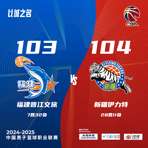 24直播网讯北京时间3月14日中国男子篮球职业联赛 常规赛,福建晋江文旅对阵新疆伊力特。半场福建47-50新疆,最终福建103-104新疆。福建晋江文旅路易斯-金25分11板5助,约瑟夫-杨22分1板1助;新疆伊力特齐麟28分10板3助,赵睿20分4板4助。