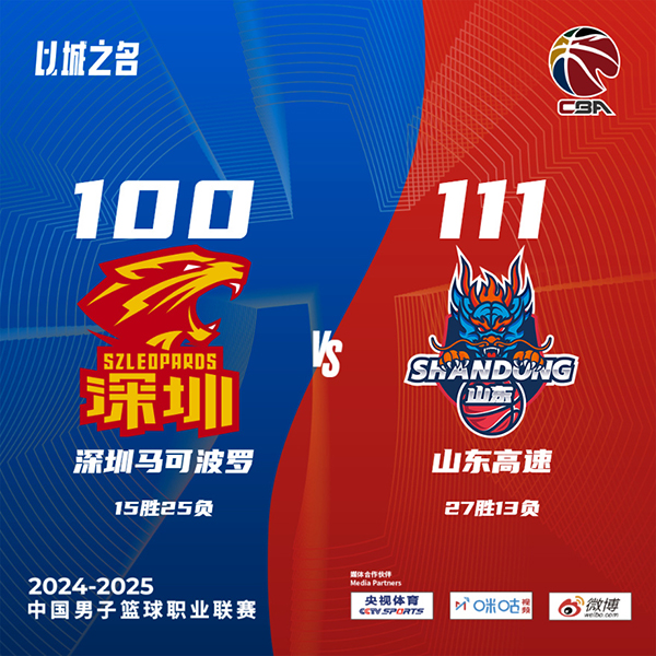 24直播网讯北京时间3月15日中国男子篮球职业联赛 常规赛,深圳马可波罗对阵山东高速。半场深圳61-62山东,最终深圳100-111山东。深圳马可波罗马凯尔-约翰逊23分1板6助,特雷沃-汤普森18分8板1助;山东高速马基斯-克里斯31分15板1助,陈培东17分1板1助。
