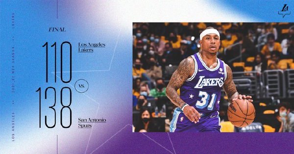 24直播网12月24日讯 NBA常规赛继续进行,湖人主场迎战马刺,湖人本赛季可算是命途多舛,3连胜的大好势头在浓眉受伤后戛然而止,目前已经3连败暂时排名西部第6,马刺则是排在西部第11位,本场比赛也是以斯台普斯中心的谢幕战,对于湖人球迷来说意义非凡。开局马刺展现出不错的外线手感,而湖人则是詹姆斯攻防两端一人扛起球队,节末湖人换上轮转阵容后由于身高的天然劣势被马刺拿到9分领先,次节詹姆斯继续里突外投帮助湖人追分,无奈于其他球员实在不给力,小托马斯和艾灵顿防守端一直被针对,马刺内线优势巨大保持11分领先。易边再战,马刺进攻端还是保持不错命中率,分差一直在10分以上,而湖人进攻端继续挣扎,节末威少连续发力虽然单节砍下17分,但湖人还是落后了13分,末节詹姆斯带领湖人多次试图反击追分,但外线手感不开终归没有成功,反倒是沃克率领马刺将分差拉开至20分以上,最终马刺轻取湖人,送对手4连败。