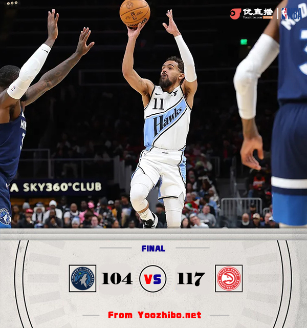 24直播网讯北京时间12月24日讯 NBA常规赛,森林狼对阵老鹰,两队最近表现都不理想,森林狼遭遇2连败,老鹰遭遇3连败。上半场两队各打一节好球,首节特雷-杨展现火热手感连连拿分,老鹰外线下起三分雨,首节便领先16分。但第二节,森林狼的轮换阵容在里德和迪文岑佐的带领下也是火力全开,老鹰则进攻准心不再,里德一度崴脚离场,森林狼单节净胜19分将比分反超。下半场回来两队陷入僵持,丹尼尔斯防守端表现给力多次贡献抢断,但森林狼进攻也打得火热。最后一节森林狼准信再度丢失,老鹰在特雷-杨的带领下趁势将比分拉开,最终老鹰117-104击败森林狼结束3连败,森林狼遭遇3连败。
