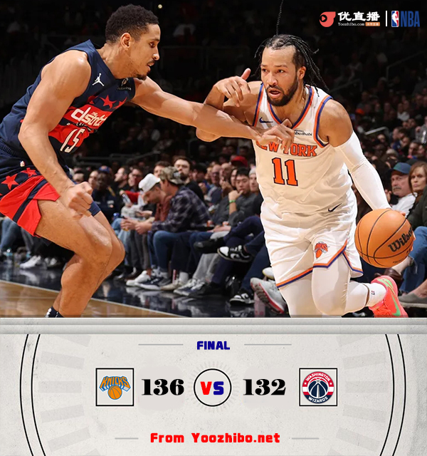 24直播网讯北京时间12月29日讯 NBA常规赛今日继续开打,奇才坐镇主场迎战尼克,这场比赛是双方三天里两场比赛的首场对决。首节之争奇才抢开局以一波16-7占据互动,不过尼克斯很快做出应对回敬14-6的攻势追上比分;次节奇才面对近期取得6连胜的对手依旧不落下风,这一节他们和尼克斯一路纠缠势均力敌并打平进入下半场。休息归来尼克斯没能占到便宜不说还在拉锯战中落入下风,奇才在节末突然爆发送出15-2的攻势一度拉开两位数分差,不过好在尼克斯及时回暖末节开局8-2止住颓势,随后尼克斯一直紧追比分并依靠布伦森在读秒阶段连拿5分拖入加时。加时赛布伦森势不可挡连续拿分帮助球队占据先机,随后点球大战里稳定罚球守住优势。最终,尼克斯加时击败奇才迎来7连胜。
