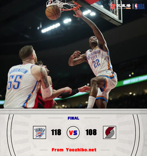 24直播网讯 北京时间1月27日讯 NBA常规赛,开拓者今日迎战雷霆,前者近来状态不错取得四连胜,后者上场比赛则是输给独行侠,雷霆已经对开拓者14连胜,此役艾顿、多特和霍姆格伦等人缺战。比赛上来,开拓者连拿六分取得领先,阿夫迪亚更是状态火热,4投4中不到半节就拿到10分,表现慢热的雷霆一度落后到两位数,好在是他们及时调整,首节结束抹平分差,次节雷霆已经完全占据场上主动权,进攻端更是势如破竹单节轰下39分,半场结束时开拓者落后13分;下半场回来,两队开始保持拉锯,不过分差并没有发生太大改变,末节前三分钟雷霆没有得分,开拓者打出一波10-0的小高潮追分,不过雷霆此后用三记三分球给出回应,开拓者没有再获得机会,最终雷霆轻取开拓者,终结后者四连胜的同时也保持了对其的15连胜。