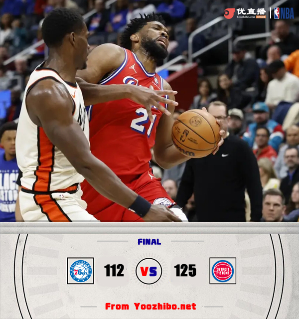 24直播网讯 北京时间2月8日讯 NBA常规赛今日继续开打,活塞今日坐镇主场迎战76人,本场比赛76人三位核心久违的全员出战,活塞方面核心康宁汉姆缺阵。首节之争双方状态令人大跌眼镜,三位核心全员出战的76人虽然保持不错的进攻状态但防守端完全阻止不了对手,而缺少核心康宁汉姆的活塞则多点开花,他们单节命中7记三分爆砍42分的同时首节就取得15分领先;次节76人依旧无法阻止对手,活塞方面比斯利承担起进攻端重担单节拿下12分,这一节活塞再砍36分,半场轻松拿到78分的同时取得29分的巨大领先。休息归来76人终于找到状态,上半场状态失常仅得3分的恩比德在这一节爆砍20分,不过76人虽然回敬单节39分的攻势但分差仍然很大;末节活塞开局稍显被动但领先优势让他们感受不到太大威胁,后半段则稳住局面重新拉开比分锁定胜局。最终,活塞主场力克76人拿下比赛。
