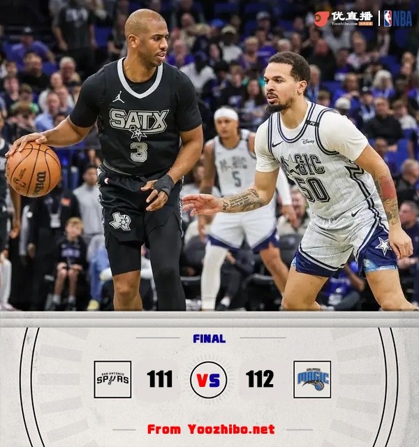 24直播网讯 北京时间2月9日讯 NBA常规赛,魔术今日迎战马刺,前者上场比赛不敌掘金,后者则是惜败黄蜂,此役萨格斯缺战。比赛上来,两队打得相对胶着,不过在11-11平后巴恩斯突然爆发,个人连中了五记三分将分差拉开到两位数,但在首节后半段马刺的命中率出现下滑,魔术抓住机会完成反超,次节双方都曾打出小高潮,分差却没有再被拉开,半场结束时马刺领先3分;下半场回来,马刺占据了场上的主动权,在凯尔登和卡斯尔连续打成2+1后分差终于拉开到两位数,末节小瓦格纳和班凯罗联手追回比分,比赛悬念保持到了最后,关键时刻班凯罗命中高难度跳投反超,文班亚马绝杀球不中,最终魔术险胜马刺。