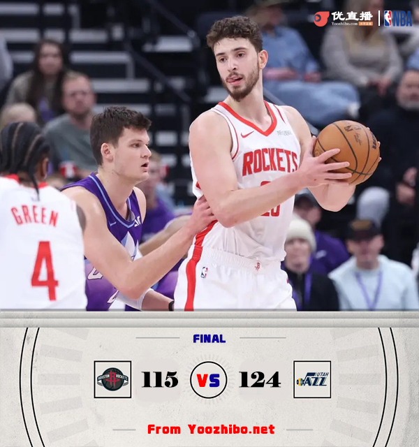 24直播网讯北京时间2月23日,NBA常规赛,火箭以115-124爆冷不敌爵士。首节火箭落后1分,半场打完火箭 反超6分,三节打完爵士缩小到3分,末节爵士很快反超到12分,随后爵士爆冷击败火箭。此役后火箭35胜22负,湖人34胜21负,湖人反超火箭升至西部第四,火箭掉至西部第五。