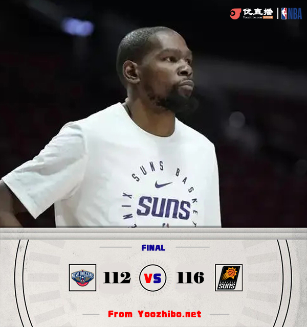 24直播网讯北京时间2月28日讯 NBA常规赛,太阳主场迎战鹈鹕。太阳27胜31负排在西部第11,鹈鹕15胜43负西部倒数第2。比尔本场缺阵。比赛开始,双方开场大打对攻,锡安得分助攻一肩挑,布克和杜兰特联手拿分给出回应,墨菲频频外线开火,次节鹈鹕命中率下降,布克穿针引线,波尔高效发挥帮助太阳迫近比分并完成反超,半场战罢太阳62-61领先鹈鹕。易边再战,两队继续缠斗,比分始终紧咬,锡安全面发挥,杜兰特和布克稳定输出还以颜色,末节双方争夺陷入白热化,关键时刻鹈鹕内外开花确立8分优势,太阳苦苦追赶无果。最终,鹈鹕124-116击败太阳,送给对手3连败。