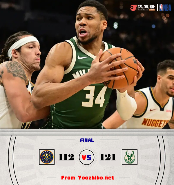 24直播网讯北京时间2月28日NBA常规赛,上半场两队展开拉锯战,半场雄鹿54-57掘金;末节雄鹿逐渐将分差拉开,最终雄鹿121-112掘金。密尔沃基雄鹿字母哥28分19板7助,洛佩兹22分4板3助;丹佛掘金约基奇32分14板10助,贾马尔-穆雷20分3板5助。