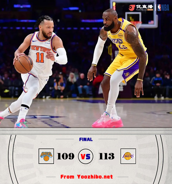 24直播网讯 北京时间3月7日讯 NBA常规赛,湖人主场迎战尼克斯。湖人目前7连胜,39胜21负高居西部次席;尼克斯则是40胜21负东部第3。本场比赛,八村塁、古德温继续缺阵,里夫斯复出;唐斯也出战比赛。比赛开始,双方都迅速进入状态,布伦森和东契奇展开对飙,东契奇和詹姆斯接连喂饼杰米森,湖人8-0取得领先,但布伦森压哨中投再进追到差4分,次节湖人进攻端陷入停滞,阿努诺比外线弹无虚发单节轰下13分,尼克斯打出进攻高潮直接反超比分,詹姆斯连续突破回应,半场尼克斯反超9分。下半场,布伦森连续突破取分,尼克斯牢牢掌握住双位数领先,里夫斯终于命中首个运动战进球,克内克特压哨三分追到差8分,末节双方都是高强度防守,湖人给机会始终把握不住,文森特和詹姆斯接连底角三分命中,湖人8-0追到仅差1分,比赛进入白热化,文森特和詹姆斯又是接连3记三分终于反超比分,布伦森2+1再扳平,双方进入加时。加时赛,东契奇接连高难度中远投连砍5分,里夫斯三分也进,布伦森连续突破或造杀伤砍下6分后崴脚受伤还坚持罚球,海斯和詹姆斯接连罚球,阿努诺比关键加罚不中,最终湖人加时113-109险胜尼克斯,豪取8连胜。