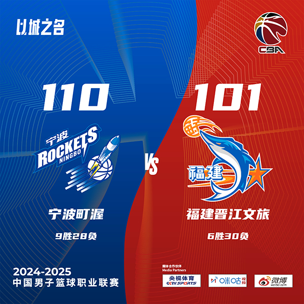 24直播网讯北京时间3月7日讯 CBA常规赛继续进行,宁波主场迎战福建,赛前福建6胜29负排名垫底,宁波8胜28负排在联赛第16位。此役一上来双方迅速找到节奏,宁波外援马奇无人可挡单节独得13分,宁鸿宇外线续上火力,路易斯-金率队短暂回应,首节结束时宁波领先6分,次节回来,邹阳里突外投率队一度反超,但中段福建进攻再度断电,宁波轰出15-0攻击波夺回优势,半场战罢,宁波保持4分优势。短暂休整后邹阳上篮福建再度反超,但宁波双外援诺伊和马奇强势回应,宁波领先3分进入末节,末节决战,双方陷入鏖战,宁波顶住对手反扑,最终宁波110-101力克福建终结12连败。