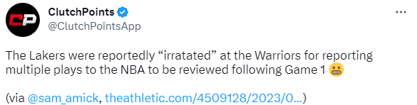 G1赛后勇士就很多吹罚向联盟申诉抗议,此举惹怒了湖人。