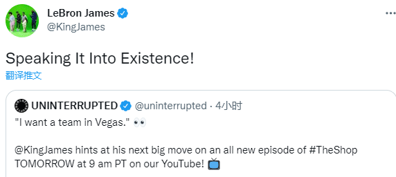 詹姆斯曾多次公开表示他想在退役后拥有一支NBA球队,现在他更是直言想要在拉斯维加斯拥有一支球队;此前联盟总裁曾表示目前NBA没有扩军的计划,但拉斯维加斯和西雅图是两个潜在的扩张地点。