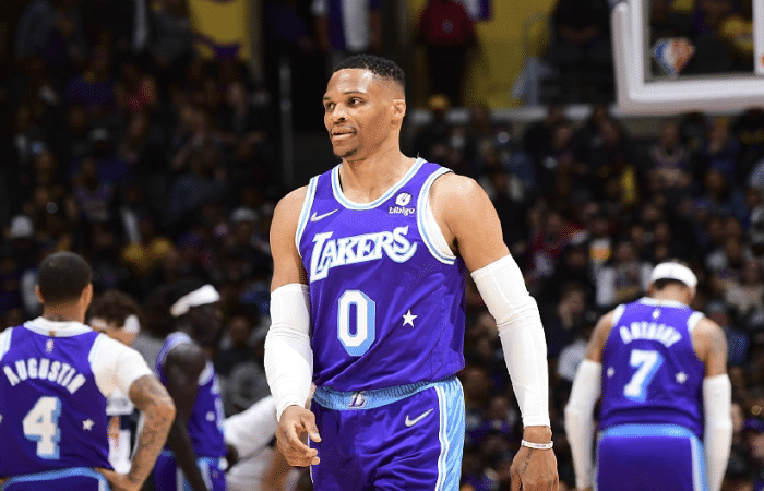本赛季威少总共为湖人出战78场比赛,场均拿到18.5分7.4板7.1助攻和1次抢断,投篮命中率44.4%和三分命中率29.8%;据统计,威少本赛季上篮和扣篮不进的次数是280次,如此扎心的数据高居联盟第一,巴雷特271次排名第二,魔术球员瓦格纳254次,塔图姆217次排在第四位。