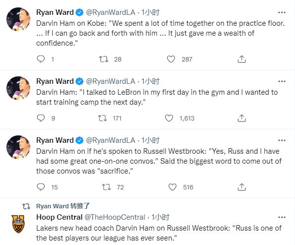 哈姆透露他们之间已经有过几次一对一的交谈,并且他们之间经常说到的一个词是“牺牲”。哈姆希望威少能够坚韧不拔,在无球以及防守端都应该能做到这样。