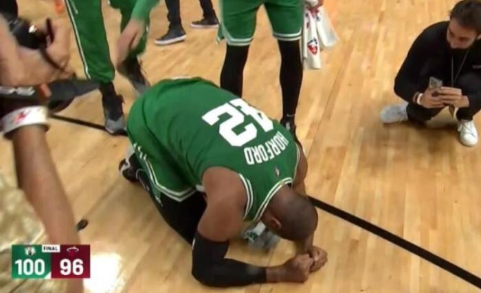 在本赛季的季后赛中,霍福德在凯尔特人阵中发挥了极为重要的作用。尤其在对阵雄鹿的系列赛中,霍福德一度隔扣字母哥,并且轰下个人季后赛最高的30分。在对阵热火的抢七大战中,霍福德抢下14个篮板球,成为绿军内线的重要支柱。比赛胜利之后,霍福德激动万分,他跪在地上狠狠捶打地板,释放自己压抑多年的情感。