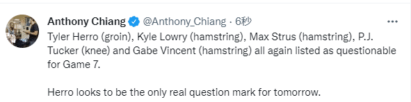 热火东决抢七的伤病名单中,希罗(腹股沟伤势)、洛瑞(腿筋)、斯特鲁斯(腿筋)、塔克(膝盖伤势)和文森特(腿筋)都被列为出战成疑,其中希罗已经因伤连续缺席3场比赛,他的伤停对热火的影响很大,今年季后赛,他场均贡献13.5分4.1篮板2.9助攻。