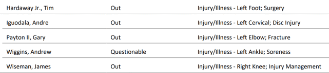勇士独行侠最多5人缺阵G3!维金斯出战成疑,水花率队飞赴达拉斯