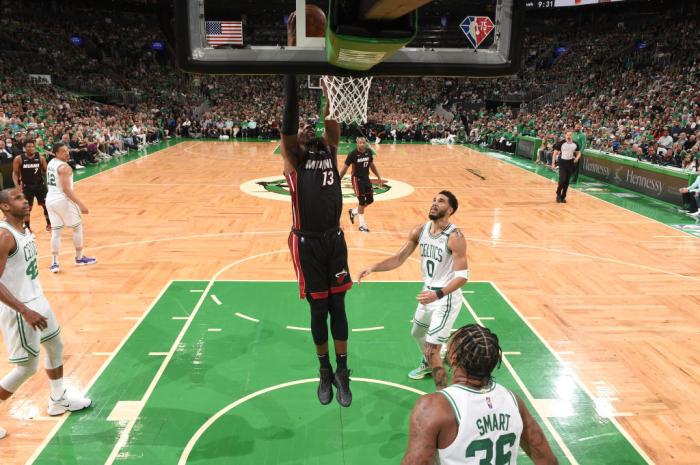 末节关键时间,热火顶住压力,斯特鲁斯三分回应布朗,阿德巴约压哨中投,洛瑞两罚全中,一波7-0稳住局面,洛瑞制胜抢断,握拳怒吼庆祝,绿军球迷纷纷退场,斯玛特和塔克抱摔双双倒地,前者六犯毕业,格威撞倒奥迪吃到一级恶犯,也犯满毕业,最终热火拿下东决G3,大比分2-1领先。