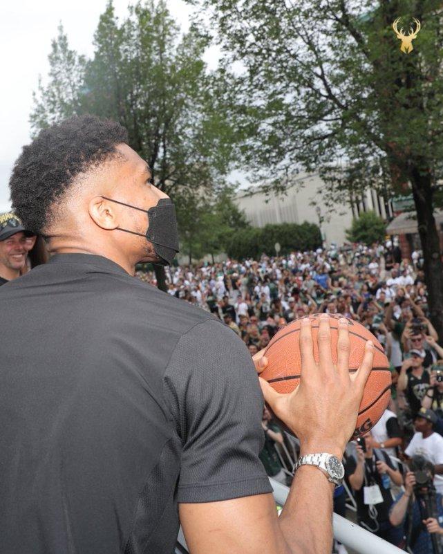 字母哥在庆典上出现搞笑一幕,他接过一个篮球,在车上摆出了经典的罚球姿势。季后赛期间,他的罚球一直备受诟病,不但命中率不稳定,而且经常超时。搞笑的是字母哥的这次罚球,依然严重超时,从他接球的那一刻,到他将球罚出,掉入球迷群中,一共耗时17秒!不过,字母哥在G6的稳定罚球(19罚17中),是他们最终夺冠的保障。