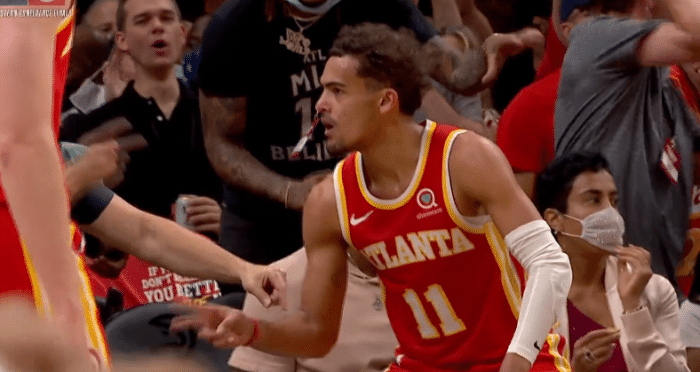 崴脚受伤离场!特雷杨三节32分露邪魅笑容+提前庆祝,全场高呼MVP