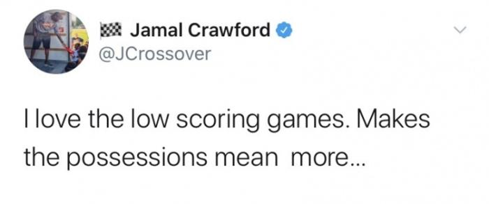 不过这样的对抗却让比赛更加紧张激烈贾马尔-克劳福德在推特上写道:“我喜欢这种得分低的比赛,这样每一个回合都更重要了。”有点复古的感觉,但最终的结果是太阳赢球,目前3:1领先的状态,保罗倒是赛后表示自己遭遇过被逆转,所以下场比赛不能大意!