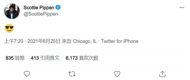皮蓬也持续输出,在推特上发文@A-史密斯支持他的言论,继续针对杜兰特,他表示勒布朗-詹姆斯在没有任何帮助的情况之下赢得过一次总冠军。在被问起是哪一年的时候,皮蓬表示是2016年的那次。
