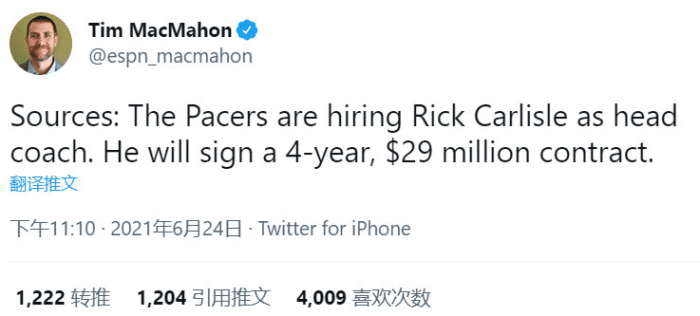 无论如何,卡莱尔最终都离开独行侠。从2008年开始,卡莱尔执教这支队伍多达13年,并且带领诺维茨基等球员,帮助达拉斯拿下了队史第一个也是唯一一个总冠军,堪称功勋教头。在卡莱尔离任之后,他的名字迅速和众多球队联系在一起,包括东部豪强雄鹿。不过最终,卡莱尔重返昔日执教过的步行者。
