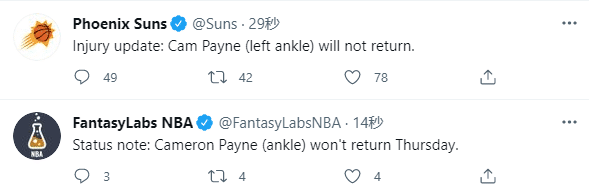 太阳官宣!佩恩脚踝扭伤仅打4分钟受伤退赛,保罗复出他不幸受伤