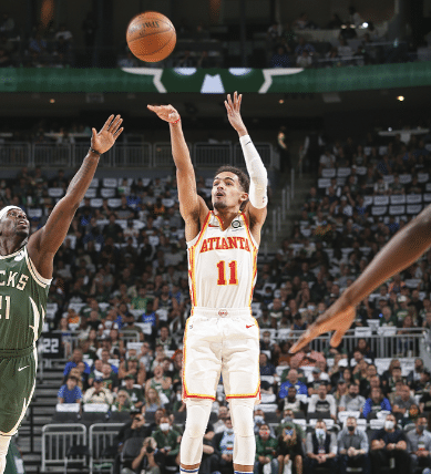 排名第四的是特雷杨,在2021年东部决赛,老鹰对阵雄鹿的比赛,特雷杨全场比赛34中17轰下48分,22岁的杨少侠职业生涯第一年季后赛就打出了如此高光的表现,真的是后生可畏啊!