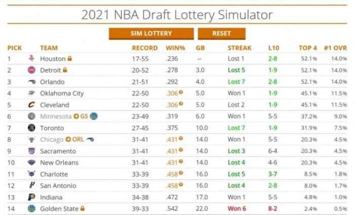 火箭常规赛仅仅拿到17胜55负,战绩排在联盟倒数第一,连续8年杀进季后赛的纪录被终结,有14%的概率获得状元签,与活塞、魔术的概率相同;很明显,火箭计划通过选秀来重建,指派奥拉朱旺担任选秀代表,最终拼手气赢得状元签。