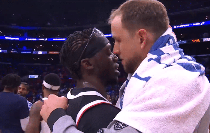 当然还有曼恩,他今天21投15中,狂砍生涯新高的39分,是球队晋级的第一功臣。赛后曼恩也和队友兴奋的庆祝,给予出局的对手鼓励和祝福。在接受采访的时候,他和保罗乔治一起,所以难怪有球迷表示,今天的曼恩就是莱昂纳德。