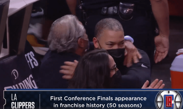 很快泰伦卢去到场地内和自家球员拥抱庆祝,同时还和爵士的康利等人致意。泰伦卢和斯奈德拥抱,这个系列赛他们的球队给球迷们奉献上了精彩的比赛,确实值得尊重。