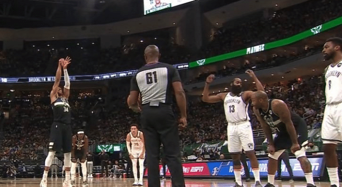 尴尬!字母哥罚球主场出现倒计时,哈登吐槽,篮网球迷攻陷客场