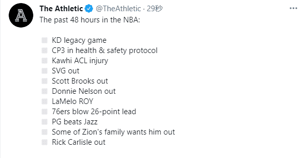来源:24直播网06-18 10:4024直播网讯美媒《The Athletic》列出NBA过去48小时发生的11件大事,堪称疯狂至极!