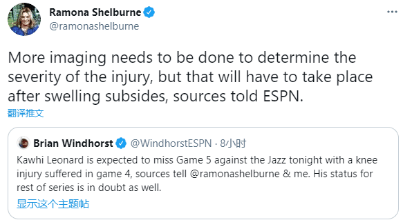 来源:24直播网06-17 10:2624直播网讯 北京时间6月17日,快船领袖莱昂纳德惨遭十字韧带的伤病,目前他的膝盖还没消肿,从而无法接受进一步的检查来确定受伤的严重程度;季后赛关键时期,小卡遭遇重伤,暂时还没有具体回归时间表,名嘴直呼快船完了。