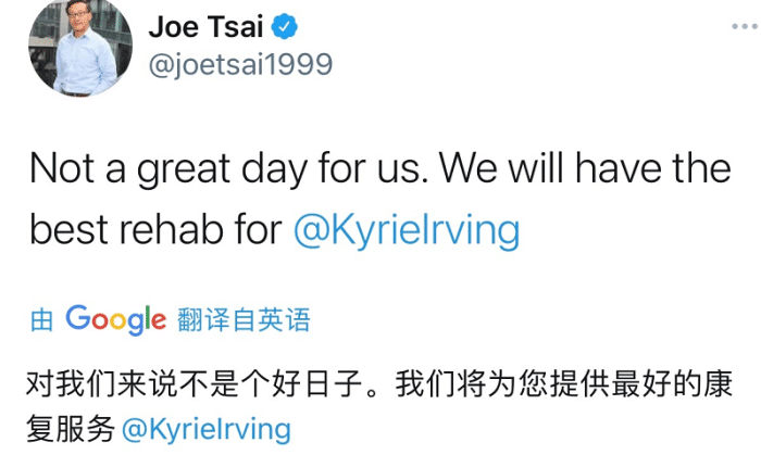 同时蔡崇信还在欧文代表球队受伤之后,很快就给出承诺,将会让欧文得到最好的医疗资源。作为老板,蔡崇信还点赞哈登的传球和乔哈在球场上的作用等等,用这样的方式来给予球员们鼓励。