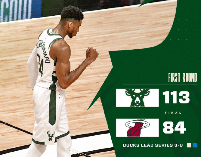 24直播网讯 北京时间5月28日,NBA季后赛,雄鹿热火的强强对决。首轮前两场,雄鹿在G1完成绝杀之后,第二场狂胜热火34分。在2-0领先之后,在很多人看来,热火基本没戏了,很可能会横扫去年的总决赛亚军。而今天的比赛,雄鹿再次大胜热火,成为联盟首组3-0球队,即将横扫热火,如果G4雄鹿不放水的话,基本上能4-0横扫,实在太强势了。