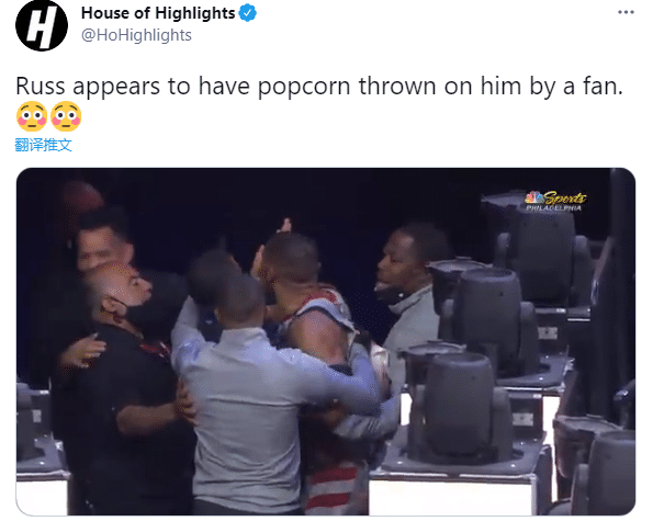 24直播网讯 费城和奇才系列赛G2比赛中,威少在回更衣室途中惨遭扔爆米花,球迷如此恶劣的行为瞬间惹怒威少,当时这球迷就被驱逐离场,如今费城已经正式向威少道歉,并且无限期禁赛重罚这位球迷。