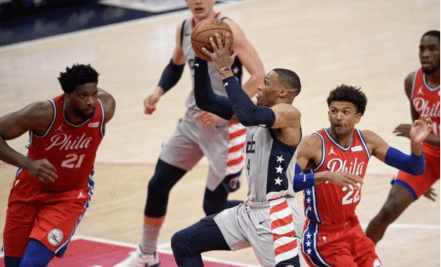 来源:24直播网05-27 19:2224直播网讯 今天对于威少来说无疑是非常糟糕的一天,5月27日,奇才队对阵费城的比赛拉开大幕,虽然威少对于比赛的胜利充满了饥渴,但是奈何实力上的差距还是让奇才很难让人看到希望。