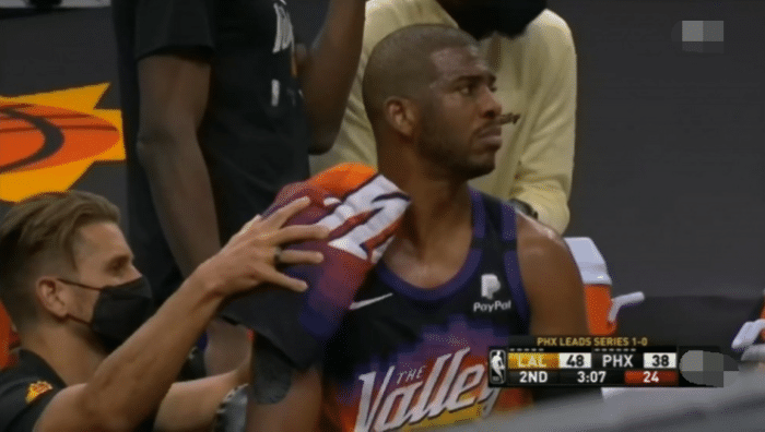 24直播网讯NBA季后赛的比赛继续进行,湖人对阵太阳队的比赛,首战的比赛太阳战胜了湖人,大比分1:0领先,的比赛对于湖人来说必须要赢下,如果0:2落后的话,球队的情况就不容乐观了。今天的比赛两队在阵容上都没有什么调整,延续了上一场的首发阵容。首节的比赛刚开始不到1分钟,克劳德就领到了2次犯规,浓眉因为踢到克劳德裆部领到一级恶犯,詹姆斯火力全开,他先是接浓眉妙传完成空接暴扣,三分投射也有,顶着防守人打成2+1,湖人将领先优势扩大到了10分,反观太阳队这边保罗受伤病影响状态不佳,首节比赛打完湖人30-24领先太阳6分。