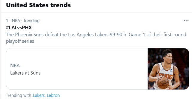 保罗因肩部受伤,本场只得到7分8助攻,但布克挺身而出。和艾顿一样,这也是他的季后赛生涯首秀,但他发挥极其出色,轰下34分7篮板8助攻的全面数据,投篮26中13,很稳定。詹姆斯开场手感不错,连续命中三分,但后半程有些乏力,全场贡献18分7篮板10助攻,他在最后一节只得到3分,而布克末节得到9分。