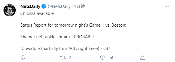 24直播网讯北京时间5月22日,篮网季后赛首轮G1对阵凯尔特人的伤情报告出炉,沙梅特(左脚踝扭伤)大概率出战和丁威迪因伤缺席,乔-哈里斯和齐奥萨都已不在伤病名单上,而且都可以出战首轮第一场比赛;篮网最强冲冠阵容来了,三巨头+神射又合体了。