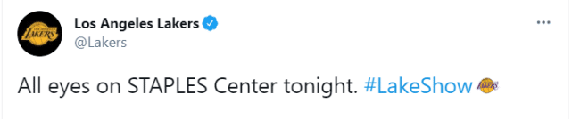 湖人和勇士的附加赛,将在北京时间5月20日上午10点打响,你预测谁能最终获胜,库里能否打破面对湖人的低迷状态?让我们拭目以待。湖人官方社媒已经迫不及待了,他们写道:“今晚,所有的目光都聚焦在斯台普斯!”
