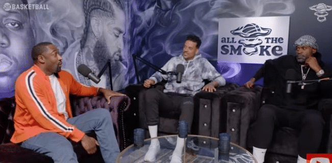 24直播网讯 北京时间5月19日,前NBA球员阿里纳斯做客斯蒂芬-杰克逊和马特-巴恩斯的脱口秀节目《All The Smoke》。他在节目中选出了自己心中的历史前五纯得分手!