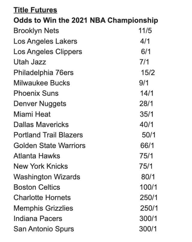 24直播网讯 在昨天NBA常规赛终于落下帷幕,因为疫情原因,这注定是不平凡的一个赛季,而现在各支球队将会向着最后的冠军发起冲击。在季后赛开始之前,媒体公布了最新的夺冠赔率,我们一起来看看。
